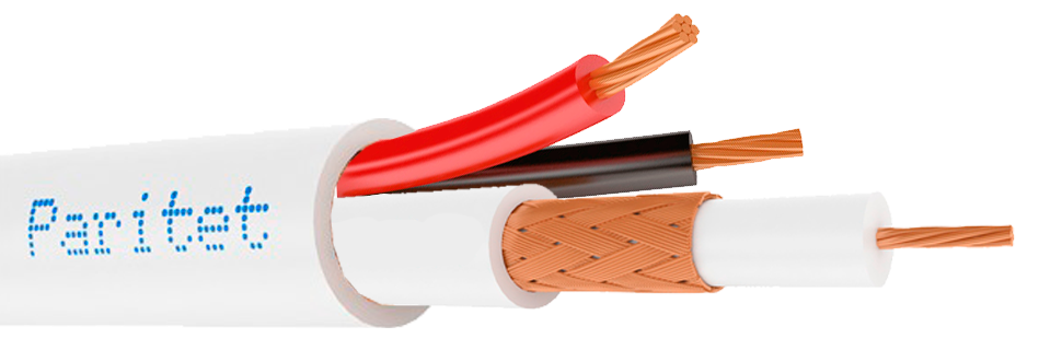 Кабель с коаксиальным (рк75-3-32) проводником и 2 жилами для питания с внешней поливинилхлоридной изоляцией, D-внешний = 8,4 мм, сечение жил = 0,75 кв. мм (для внутренней прокладки)